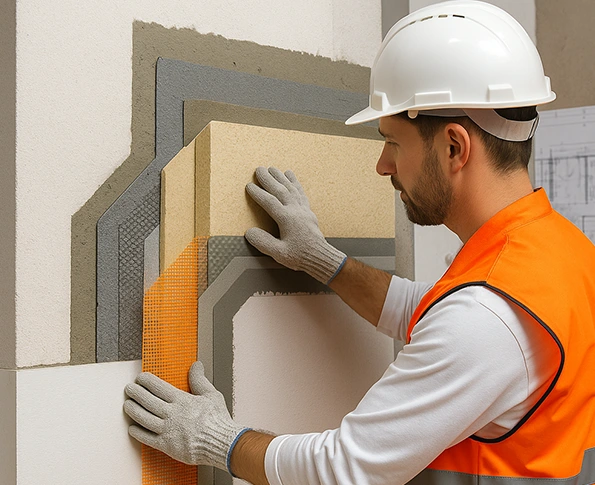 Paneles de EPS, lana de roca o corcho aplicados en fachada exterior para crear una envolvente térmica continua. Mejoran el aislamiento sin reducir espacio interior y permiten renovar la estética del edificio.